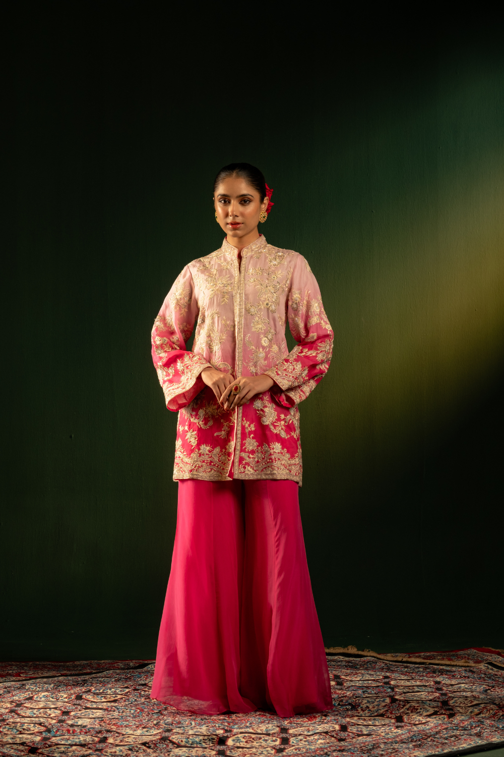 OMBRE GREY AND FUSCHIA JACKET SET