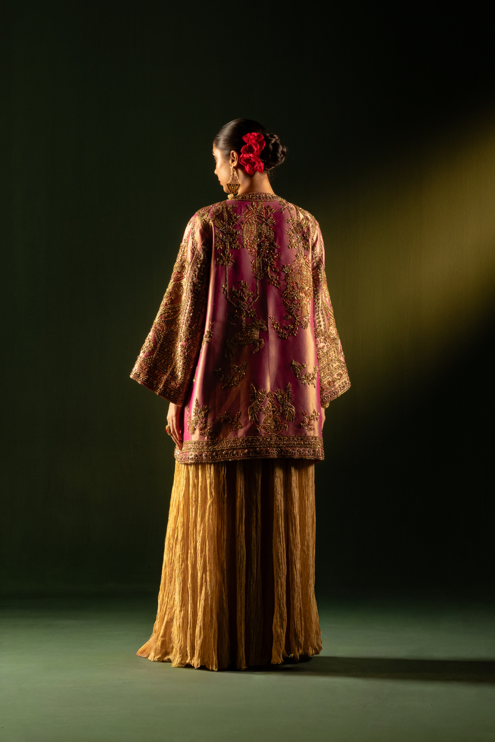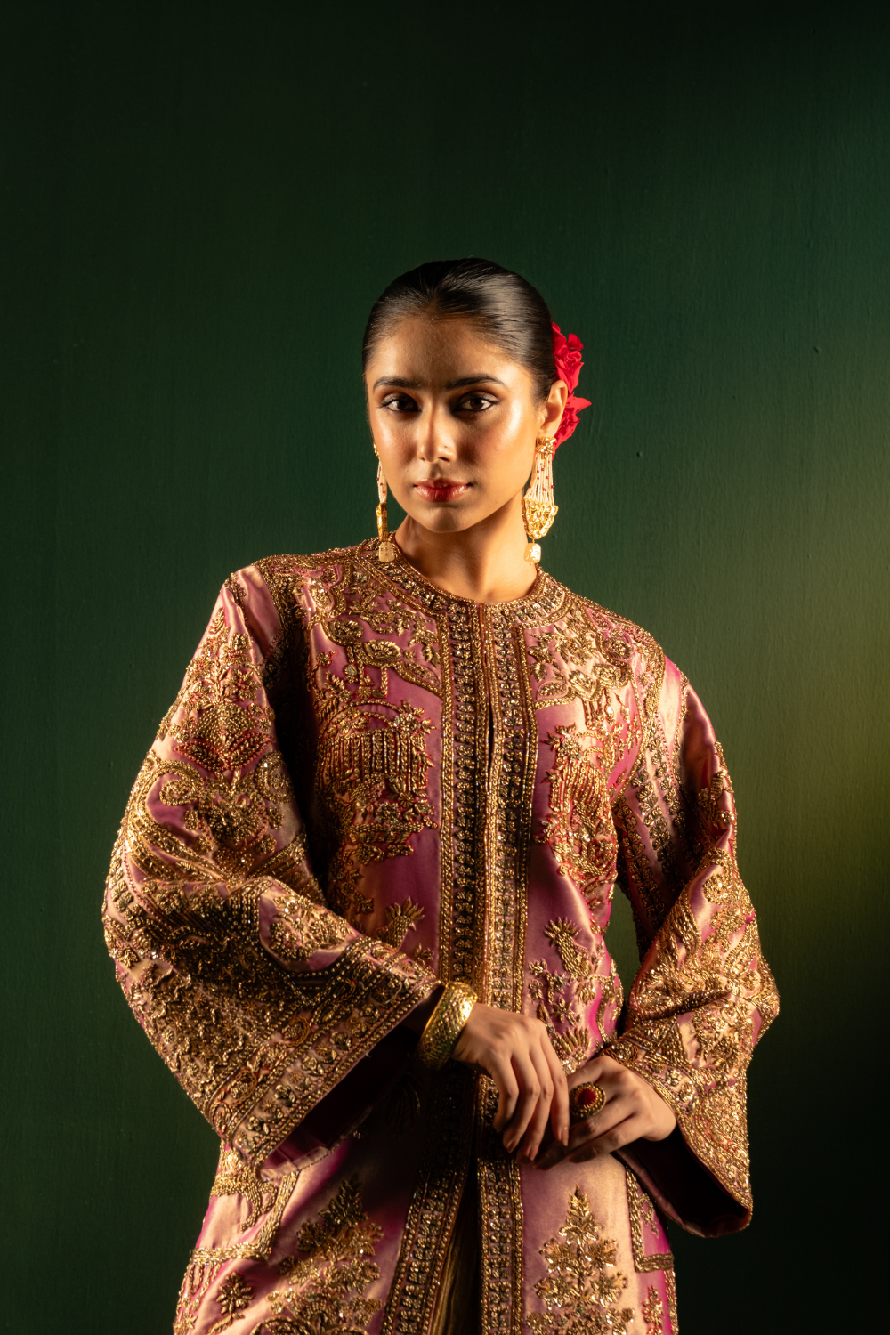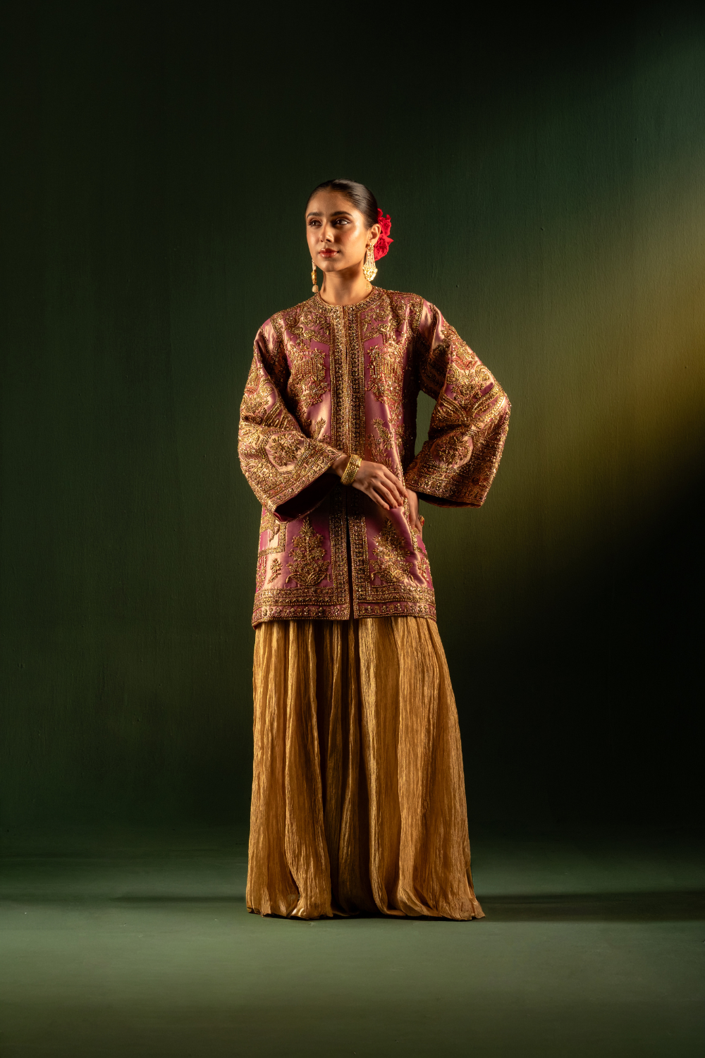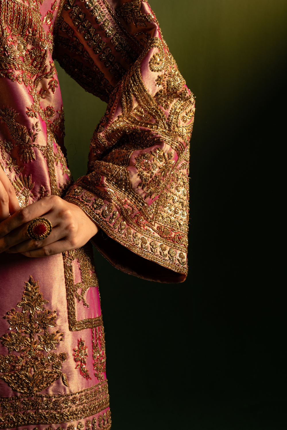 PINK LAME HORSE JACKET WITH ZARDOZI WORKColour:- GOLD PINK Fabric:- PURE TISSUE LAME