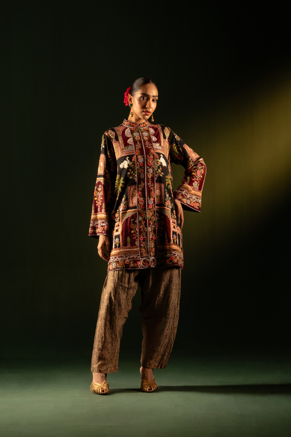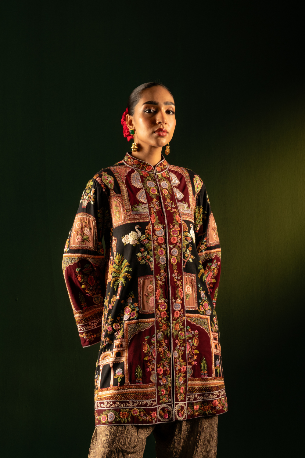DOVE SERIES PATCH JACKET WITH HAND EMBROIDERED ON GEORGETTE SILK